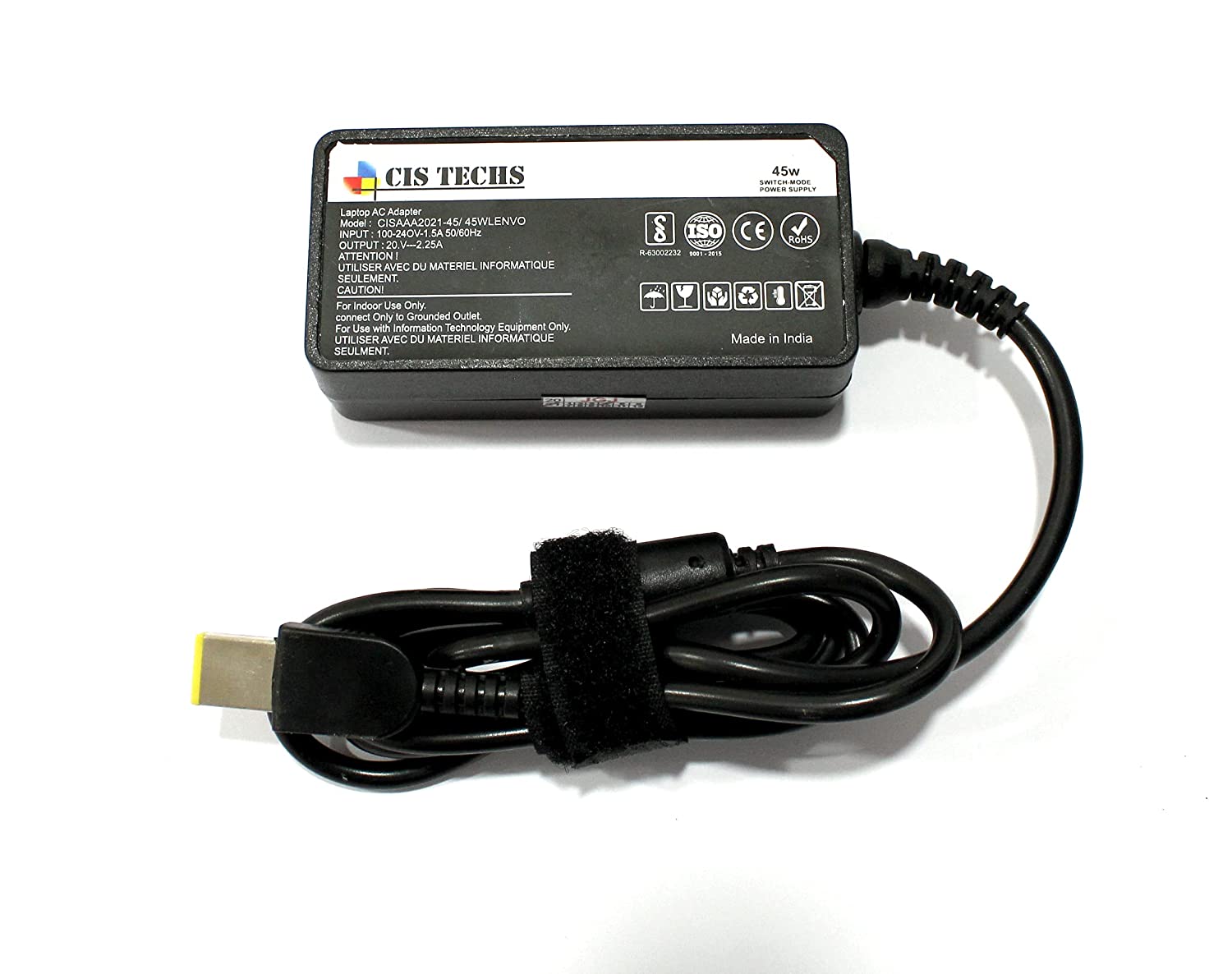 - Technical Specifications: Output: 20 V, 2.25 A, 45W Input: 100-240 V, ~1.2 A, 50-60 Hz
