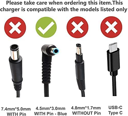 CIS Techs for hp small Blue Laptop adapter & mobile charger, Input Volt Range: 100-240V / Output: 19.5V 2.31A 45W Connector tip: 4. 5*3. 0mm / Total Cord Length Is Extended to 10 Ft (Easy to carry)! Compatible P/N: HP 741727-001 / 740015-003 / HSTNN-DA40 / HSTNN-LA40 / 740015-004 / 740015-002 / 721092-001 / 740015-001 / A045R07DH / 721092-001 / 854054-002 / 854054-003 / 854054-001 / 740015-001 Compatible Models: HP Chromebook 14-x010nr / 14-x010wm / 14-x013dx / 14-x015wm / 14-x030nr / 14-x040nr / 11-2110nr / 11-2210n / / HP Pavilion x360 / x2 / 11 / 13 / 15 / M1 / Touch Smart: 11-e115nr / 11-n010dx / 11-n011dx / 11-n012dx / 15-ac121dx / 15-ac143wm / 15-af073nr / 15-af131dx / 15-af174nr / 15-an050nr / 15-an051dx / 15-ay011nr / 15-d017cl / 15-d020dx / 15-d030nr / 15-d035dx / 15-d073nr / 15-f003dx / 15-f004dx / 15-f004wm / 15-f133wm / 15-f162dx / 15-f205dx / 15-f211wm / 15-f215dx / Compatible Models:Hp Spectre x360 charger 15-n013dx 15-f305dx 15-f162dx 15-f009wm 15-f010wm 15-f024wm 15-f039wm HP 15-r015dx 15-f008cl 15-p100dx 15-g013cl 15-d035dx 15-bs015dx 15-ba009dx 15-ay196nr 15-ay191ms 15-ay127cl 15-ay041wm 15-ay039wm 15-af131dx 15-af113cl 14-ax040wm 14-ax020wm 14-ax020nr 14-ax010wm 14-an013nr 14-an012nr